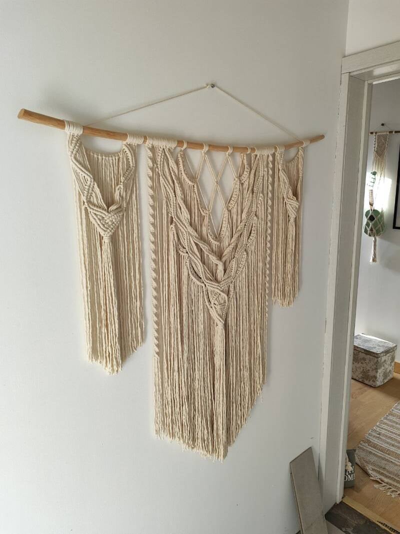 Firstly made in 2020 when my father showed me how to use mitre saw at the first time in my life. So I just sawed all the wood that I could and a little birch tree trunk too. Originally there was a Solar System planets, drawn with the black liner, but after several years I've painted it with the gouache and changed the design to the moon phases. I like to re-do this mobile ocasionally and change the details.