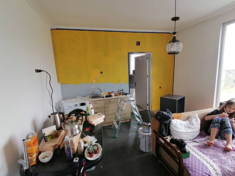 I have dismantled old tiled floors, installed a new parquet board. Made an extra sockets, two-way switch and painted the walls.
