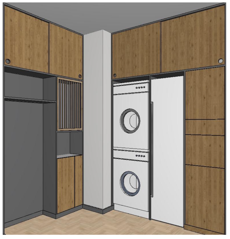 My technical visualisation. 3d section and view without the doors.